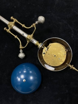Patinaed metal figure of Nebuleuse by August Moreau on a roux marble base supports the Torsion Pendulum. The rear view shows the suspension assembly which passes down through the tube. |