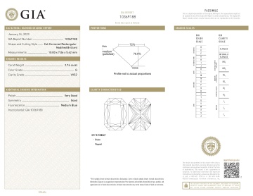 Cut-Cornered Rectangular Modified Brilliant Cut 2.74 CT diamond ring with VVS2 Clarity and color grade of G. GIA Report Number 10369188. Note: For new customers purchasing silver, gold, or jewelry, we require payment by wire or check. |