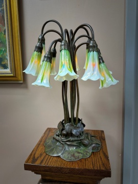 Tiffany Studios Ten-light Lily with Pulled Feather Shades
