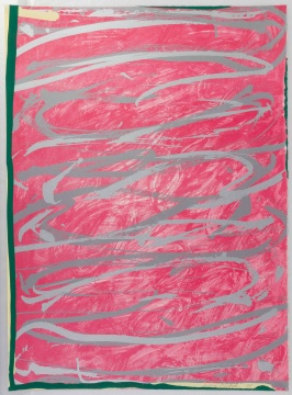 | 1988 Lithograph on paper. IN 5 COLORS (pink, 2 silvers, green and yellow). Edition 29 of 125. Signed 'Jules Olitski 88' (lower right). |