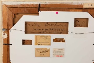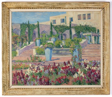 Oil on canvas. "Samarkand Garden, Santa Barbara, Cal." on reverse. Original frame. Signed lower right. Buffalo collection. |