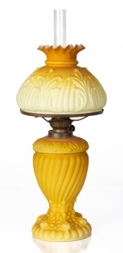 | Lot #: 100 Butterscotch Acanthus Cased Oil Lamp |