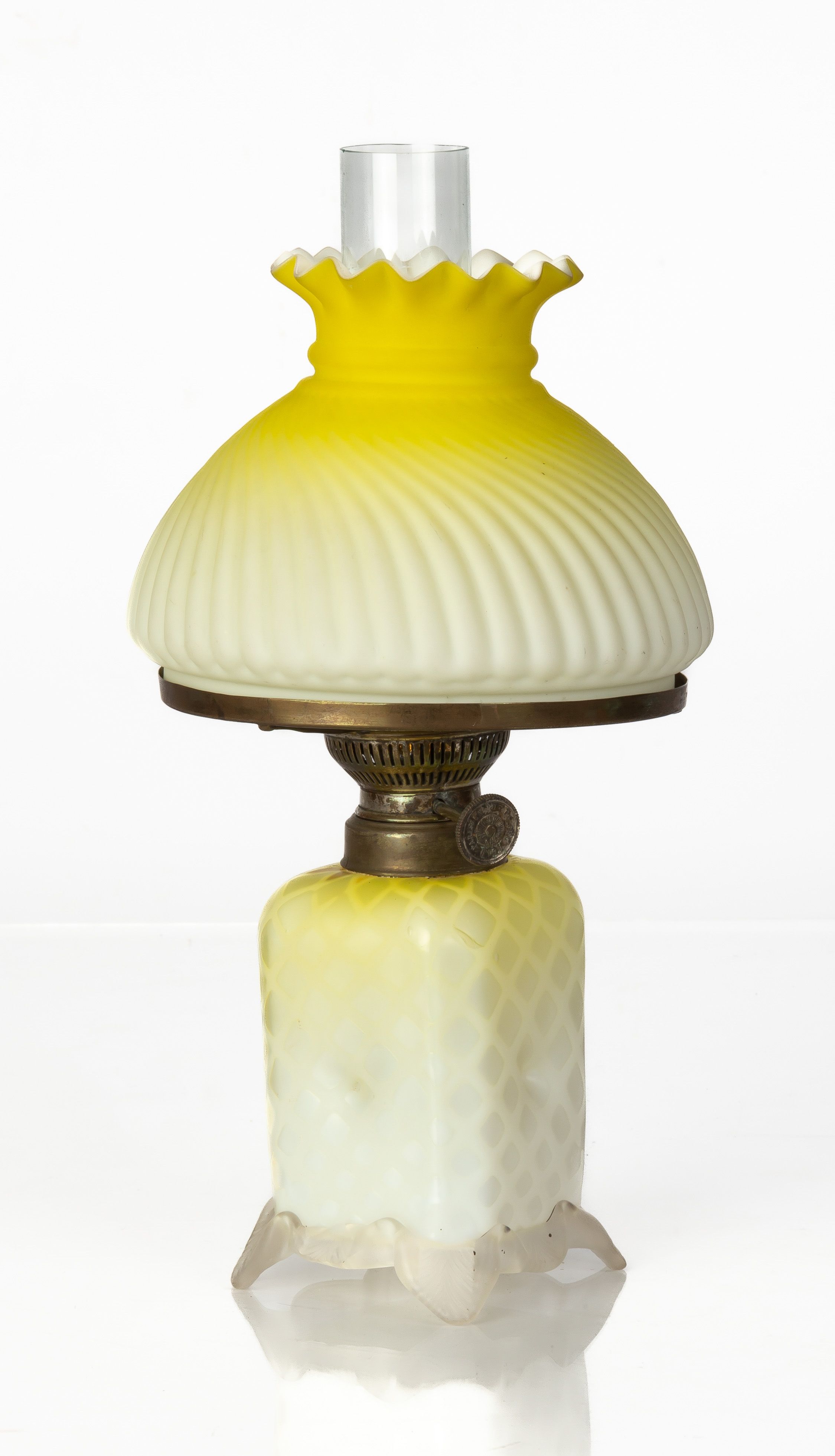 | Lot #: 101 Miniature Lemon Swirl Satin Glass Oil Lamp |