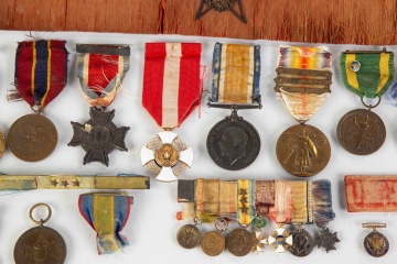 | Memorabilia includes military medals and ephemera. Large group of military photographs. |