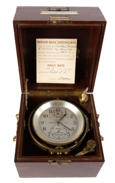2-Day US maritime commission. Original brass-bound mahogany case. 5- inch dial. |