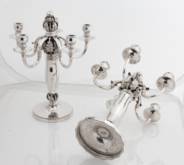 | Lot #: 6 Pair of Fine and Rare Silver Five-Light Candelabra, Designed by Georg Jensen, Mark of Georg Jensen, Cophenhagen, 1925-1932 |