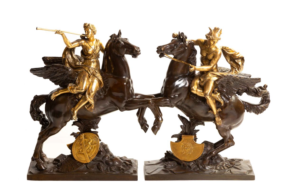 | Lot #: 181 Emile Louis Picault (French, 1833-1915) after Antoine Coysevox (French, 1640-1720), Fame and Mercury Astride Pegasus |