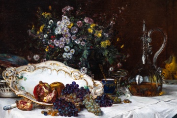 Oil on canvas. Signed 'H. Cauchois Aout 1874' (lower left). Catalogue Note: The Flemish idiom of flower painting during the first decades of the 19th century combined meticulous draftsmanship enhanced by life-like colors. This style never quite lost its appeal as the 19th century progressed, especially in France, but by the mid-19th century, one can see the emergence of a new variety of flower painters liberated from the realistic botanical approach of their traditional forerunners. Albeit a brief period, French flower painting reached a pinnacle of excellence before the Impressionists' emphasis on decomposition of light or the ruthlessly synthetic approach of many of the other movements such as the Nabis at the turn of the century overwhelmed the market. |