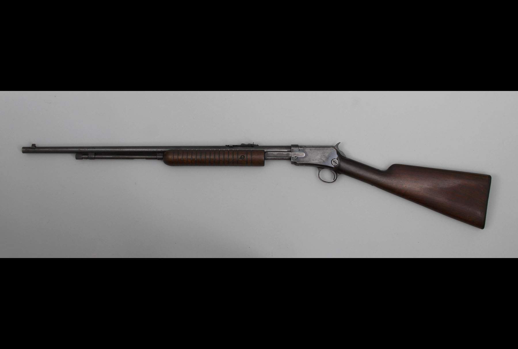 | Serial #108796. 22 short, long & long caliber. 23" barrel. Takedown. Slide action. Correct sights. Pre-WWII. Est. $400-$500 |