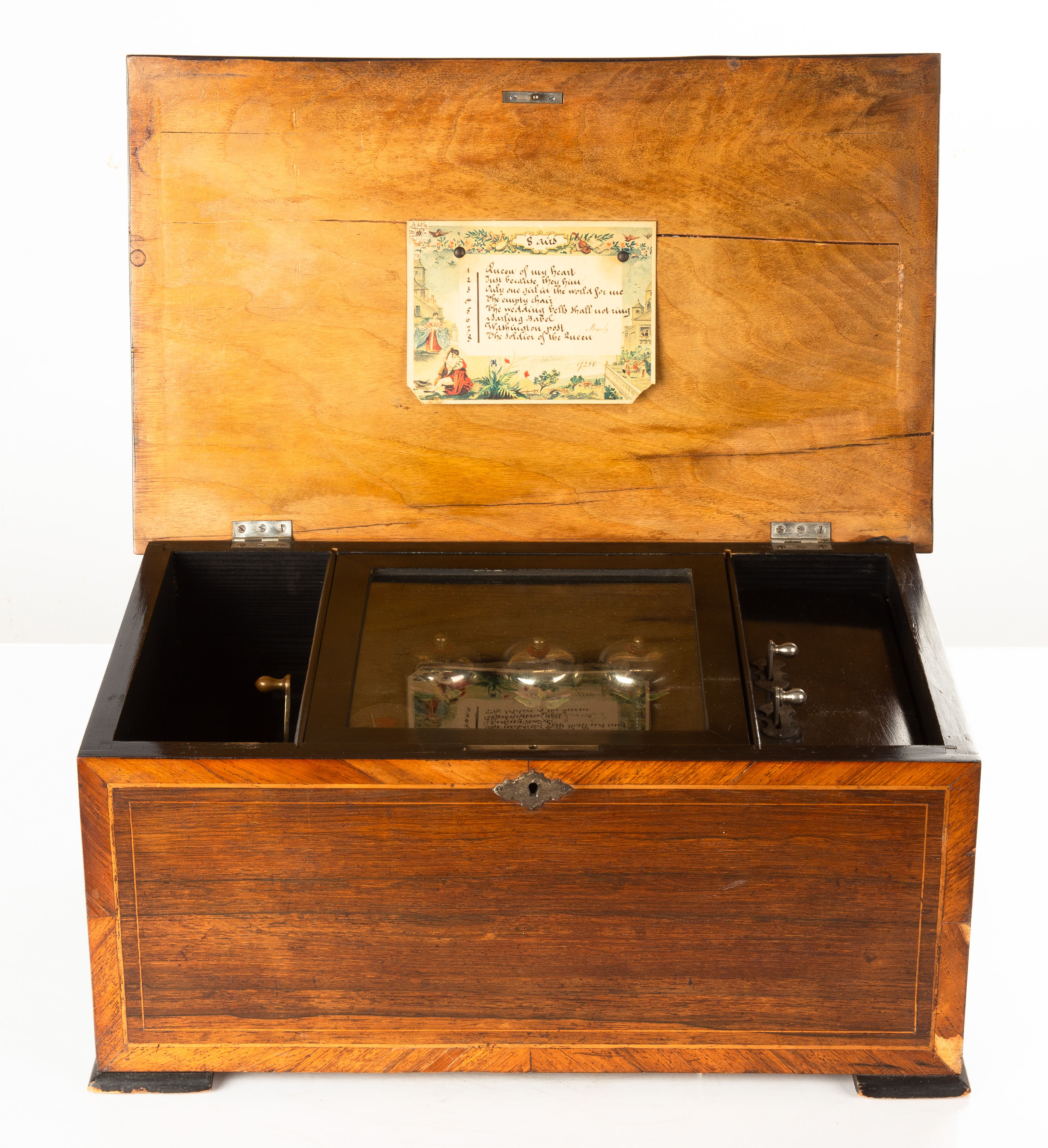 | 19th century, rosewood veneer inlaid case, with bells and buttflies strikes. |