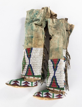 | Lot #: 347 Sioux Child's Moccasins with Leggings and Green Paint |