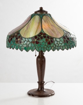 Early 20th century. leaded glass, patinaed metal. Shade impressed 'Handel'. |