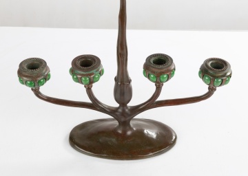 | Lot #: 45 Bronze Four-Light Blown-Out Candelabrum in the Manner of Tiffany Studios |