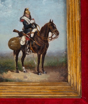 | 19th century. Both oil on wood panel. Depicting soldiers on horseback. |