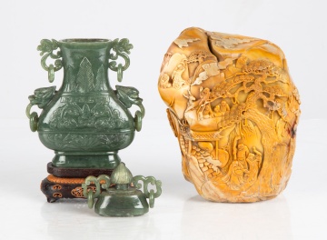 | Lot #: 74 Chinese Jade Censor & Soapstone Scholar's Mountain |