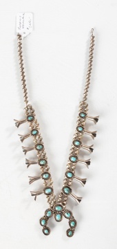 | Lot #: 91 Navajo Turquoise & Silver Squash Blossom Necklace |
