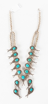 | Lot #: 92 Navajo Turquoise & Silver Squash Blossom Necklace |