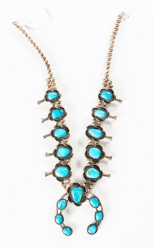 | Lot #: 93 Navajo Turquoise & Silver Squash Blossom Necklace |