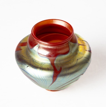 | Lot #: 11 Tiffany Studios Red Favrile Decorated Cabinet Vase |