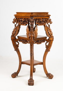 | Lot #: 103 American Oak Three-Tier Table with Griffins |