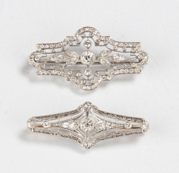 | Lot #: 219 Two Antique Art Deco Platinum & Diamond Pins/Brooches |