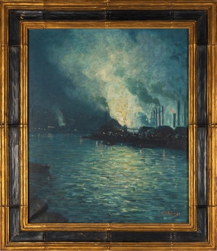 | Lot #: 252 Aaron Harry Gorson (American, 1872-1933) Pittsburgh Steel Mill Nocturne |