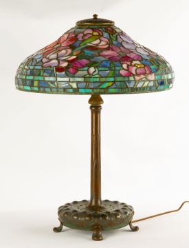 Circa 1910, leaded glass, patinaed bronze. Greenish-brown patina. Shade impressed 'TIFFANY STUDIOS NEW YORK 1475-41'. Base impressed 'TIFFANY STUDIOS NEW YORK 359 S173'. Literature: Tiffany Lamps and Metalware, by Alastair Duncan, Woodbridge: Suffolk: Antique Collectors' Club, 1988, shade: pg. 145, plate 606, base: pg. 74, plate 285 (for similar examples). |