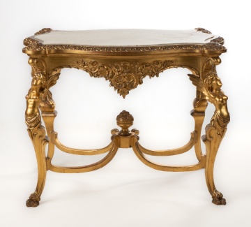| Lot #: 315 French Rococo Serpentine Giltwood and Onyx Top Center Table |