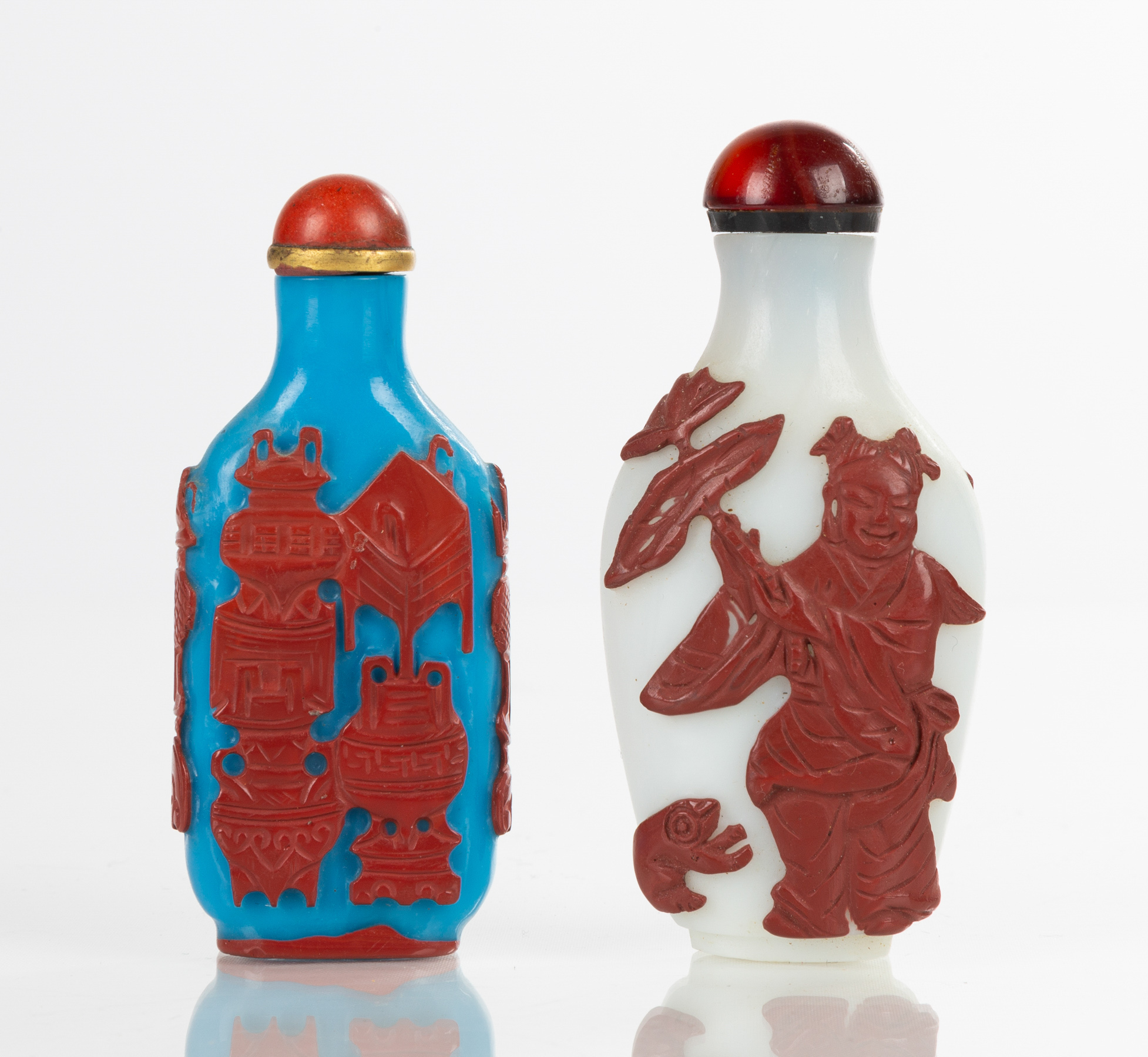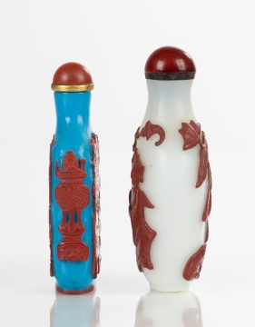 | Lot #: 4 Two Cinnabar Overlay Glass Snuff Bottles |