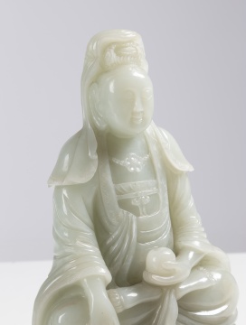 | Lot #: 6 Chinese White Jade Statuette of Guanyin, Qianlong Period |