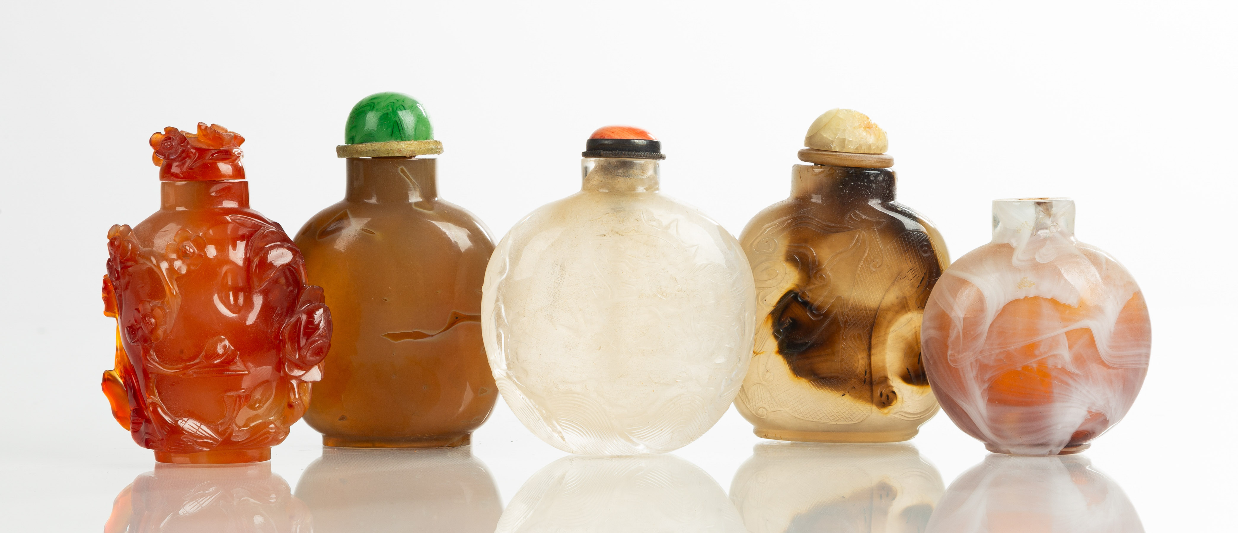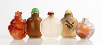| Lot #: 16 Five Hardstone Snuff Bottles |