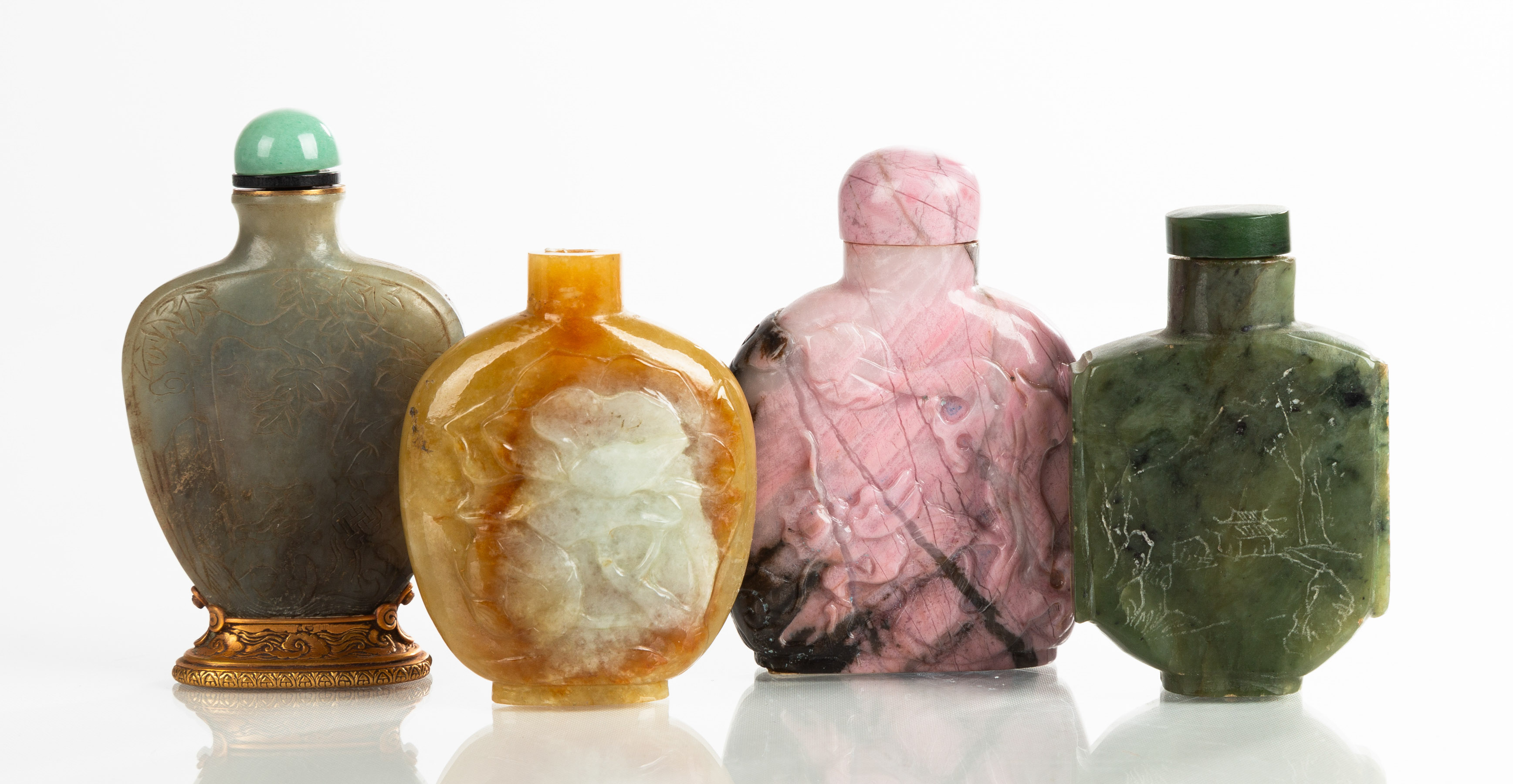 Jade, Rhodonite, & Agate Snuff Bottles