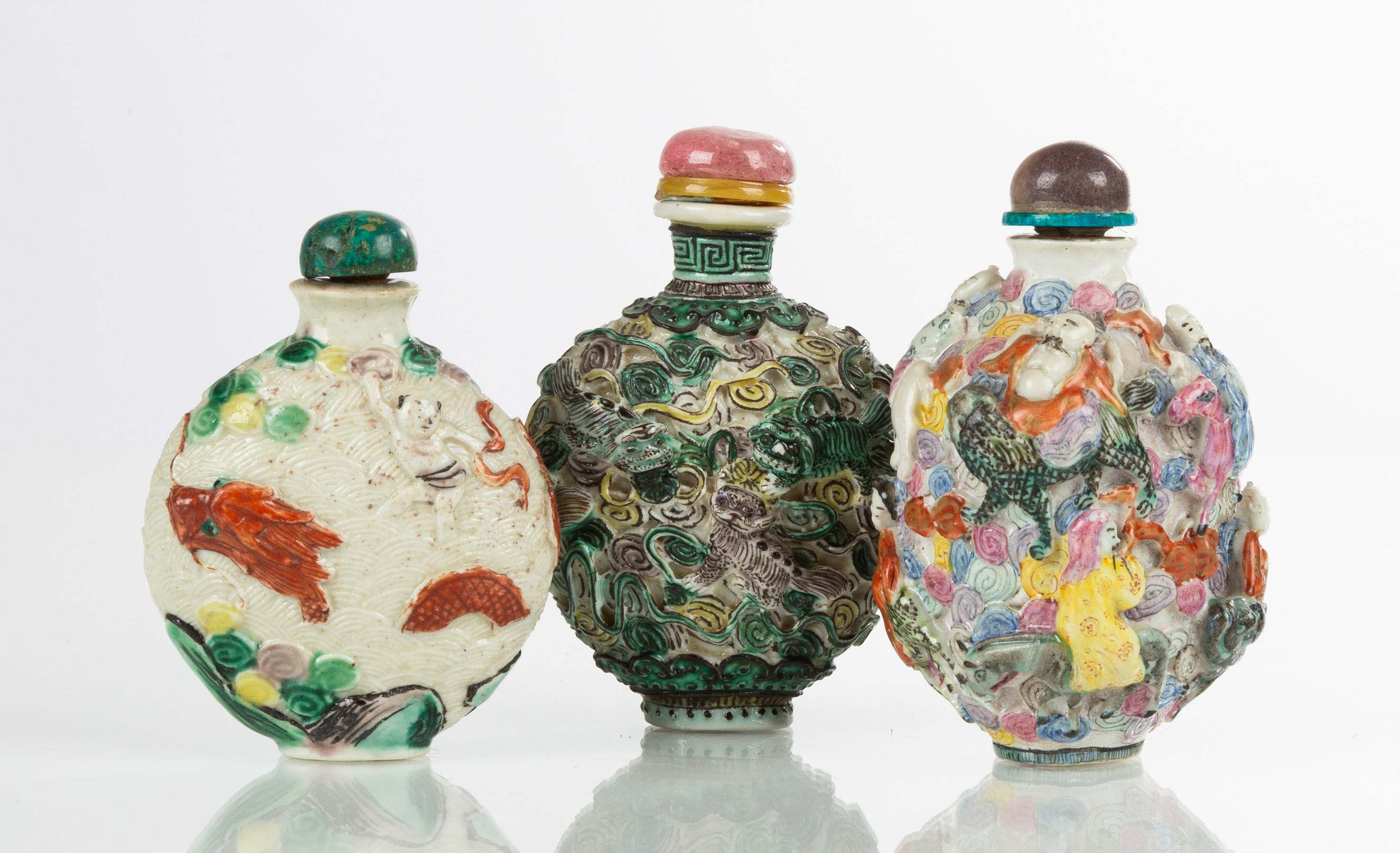 Three Famille Rose Snuff Bottles
