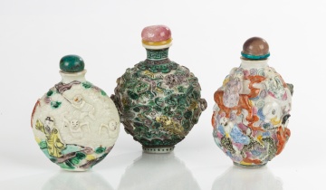 | Lot #: 28 Three Famille Rose Snuff Bottles |