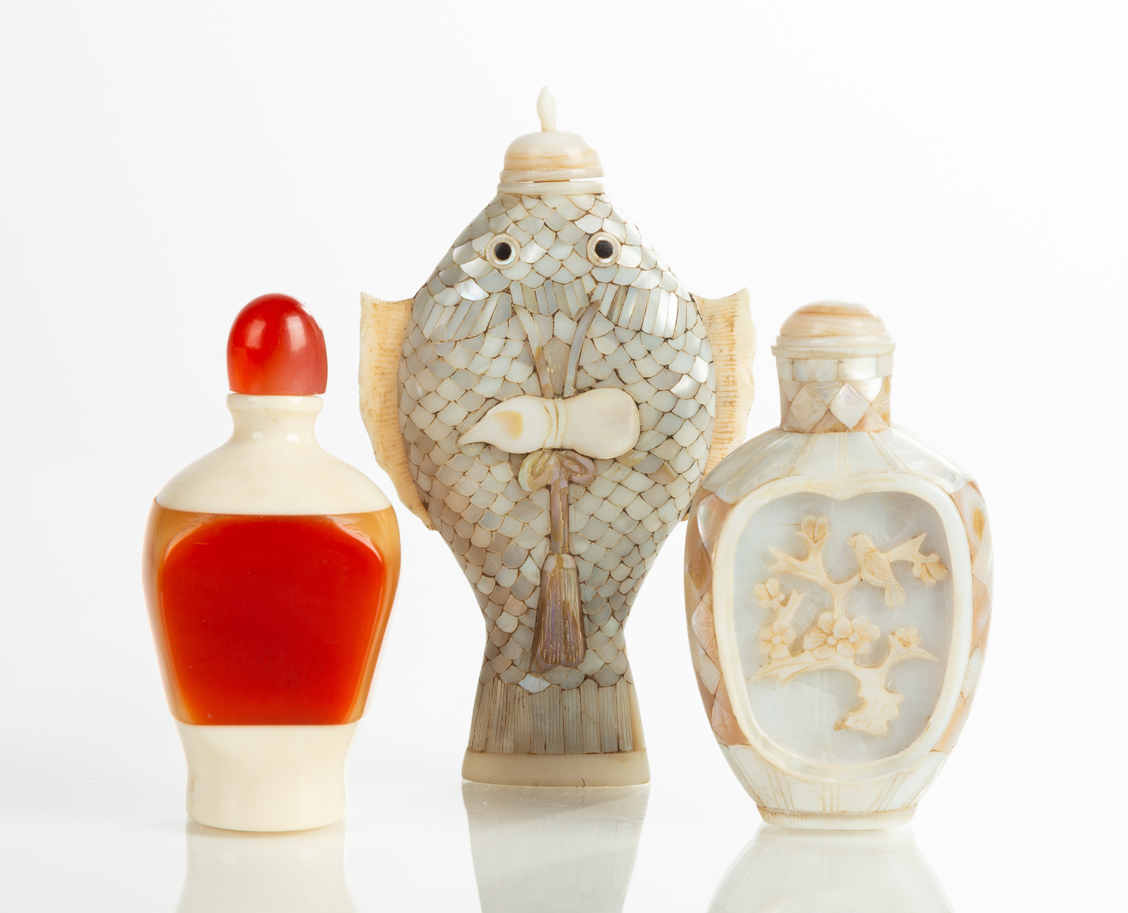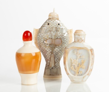 | Lot #: 35 Mother of Pearl & Amber Snuff Bottles |