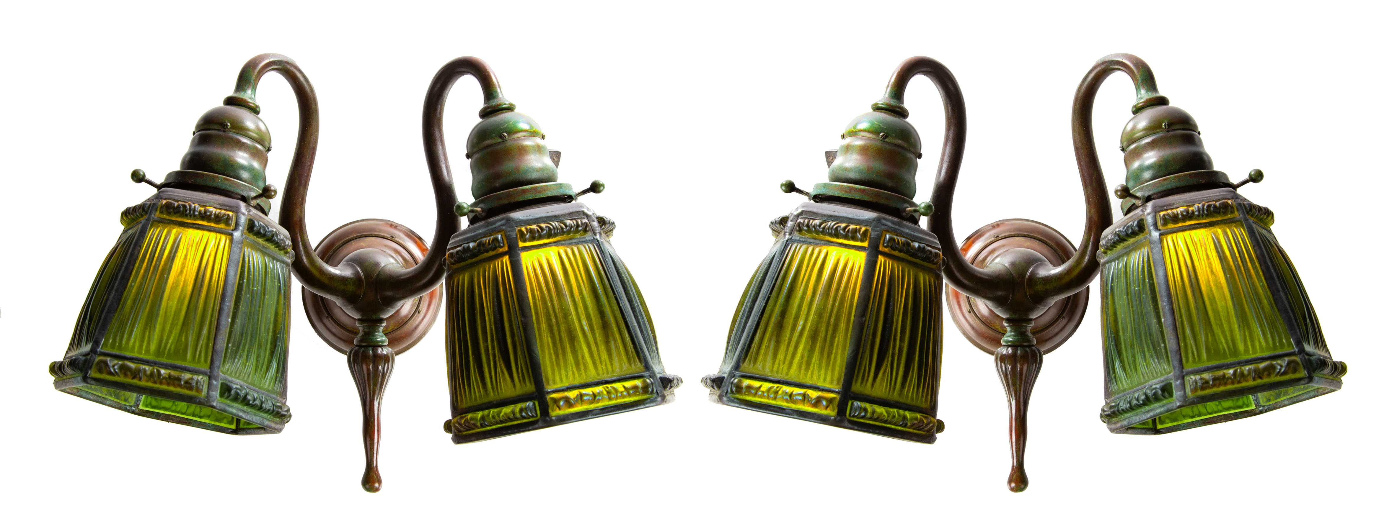 | Lot #: 66 Pair of Tiffany Studios Linenfold Sconces |