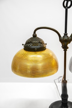 | Lot #: 74 Tiffany Studios Double Student Lamp with Gold Damascene Shades |