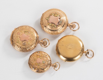 One 18K & Three 14K Gold Pocket Watches