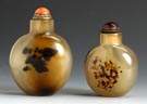 | Lot #: 370 Two Agate, Flattened Bulbous Form Snuff Bottles |