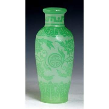 | Lot #: 502 Steuben Jade Green Over Alabaster Vase |