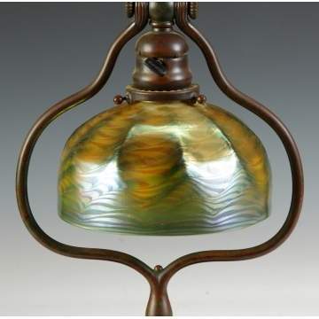 | Ribbed shade sgn. LCT. Bronze base sgn. Tiffany Studios New York #419. |