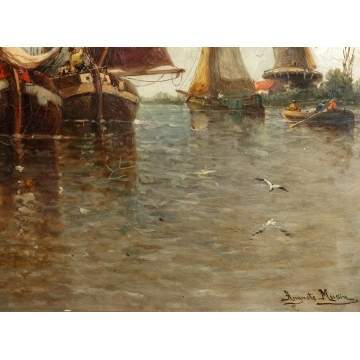 | Lot #: 523 Augusta Musin (Belgium, 1852-1920) Boats in harbor, Holland |
