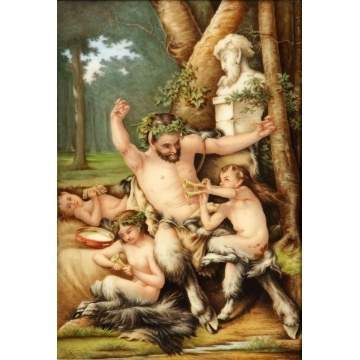| Lot #: 541 Painting on Porcelain of Satyr and Pans |