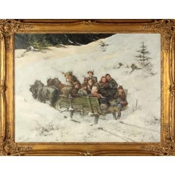| Lot #: 733 Albert Muller-Lingke (German, 1844-1930) Winter Sleigh Ride |