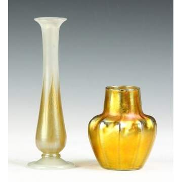 | Lot #: 804 Tiffany Gold Iridescent Vase w/Ribbed Sides |