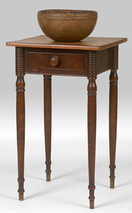 turned leg and banded top, orig. finish, top cleaned. vg 28 1/2 " ht. 17" w. 16" d