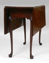 rectangular top w/2 drop leaves w/shapes on apron, cabriole legs ending in pad feet, old finish possibly original, minor old repairs. vg