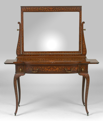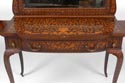 bow front 3 drawer mahogany case w/floral marquetry decoration, orig. finish vg