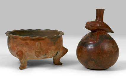 (left) 3 Legged Am. Indian Pot w/ Faces