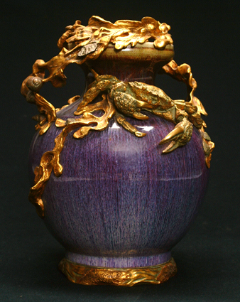 Pottery Vase w/ Gold Dore Bronze Mounts In The Oriental Taste
